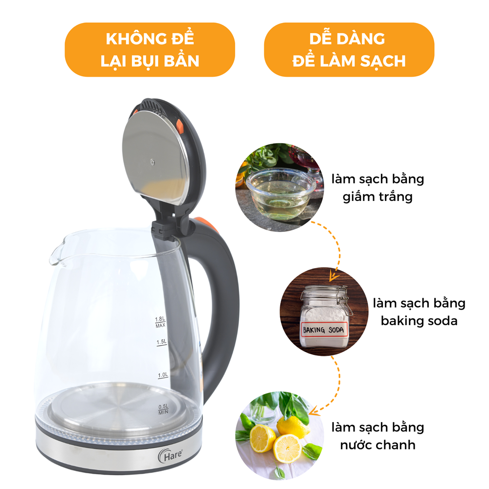 Ấm đun siêu tốc Hare HR-KE1806 (1.8L) Là sản phẩm được làm bằng chất liệu có độ bền cao và không gây hại cho sức khỏe của người dùng, ít hao phí điện năng giúp bạn tiết kiệm hơn.
