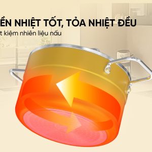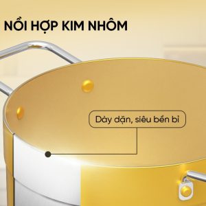 - Thân nồi hợp kim nhôm dày dặn, bền bỉ