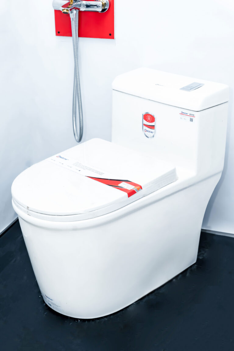 Thế hệ bồn cầu 1 khối hiện đại ngày nay thường được tích hợp nhiều công nghệ mới nhằm mang đến sự trải nghiệm tốt hơn. Và phủ men tuyết là một trong những công nghệ được nhiều hãng bồn cầu lớn ưa chuộng hiện nay. Không ngoại lệ OROCHI cũng được sản xuất theo công nghệ hiện đại, đáp ứng các quy chuẩn chất lượng, công nghệ phủ men tuyết tạo nên lớp men chất lượng với màu men trắng, nước men mịn, trắng trong và bóng loáng. Có độ thấu quang chịu nhiệt và va chạm cực tốt, không thấm nước. Sen vòi cao cấp OROCHI được chế tạo từ chất liệu đồng (hàm lượng đồng đạt từ trên 52%), có khả năng kháng khuẩn cao. Hàm lượng chì tiêu chuẩn có trong đồng là ≤0.25%, ít tạp chất, kết cấu chắc chắn, không có hiện tượng rò rỉ nước do các vết nứt trên thân và vết nhám tạo nên.