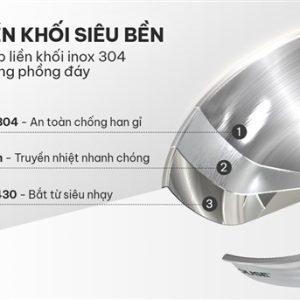 - Kết cấu inox liền khối siêu bền bỉ, chống phòng đáy
