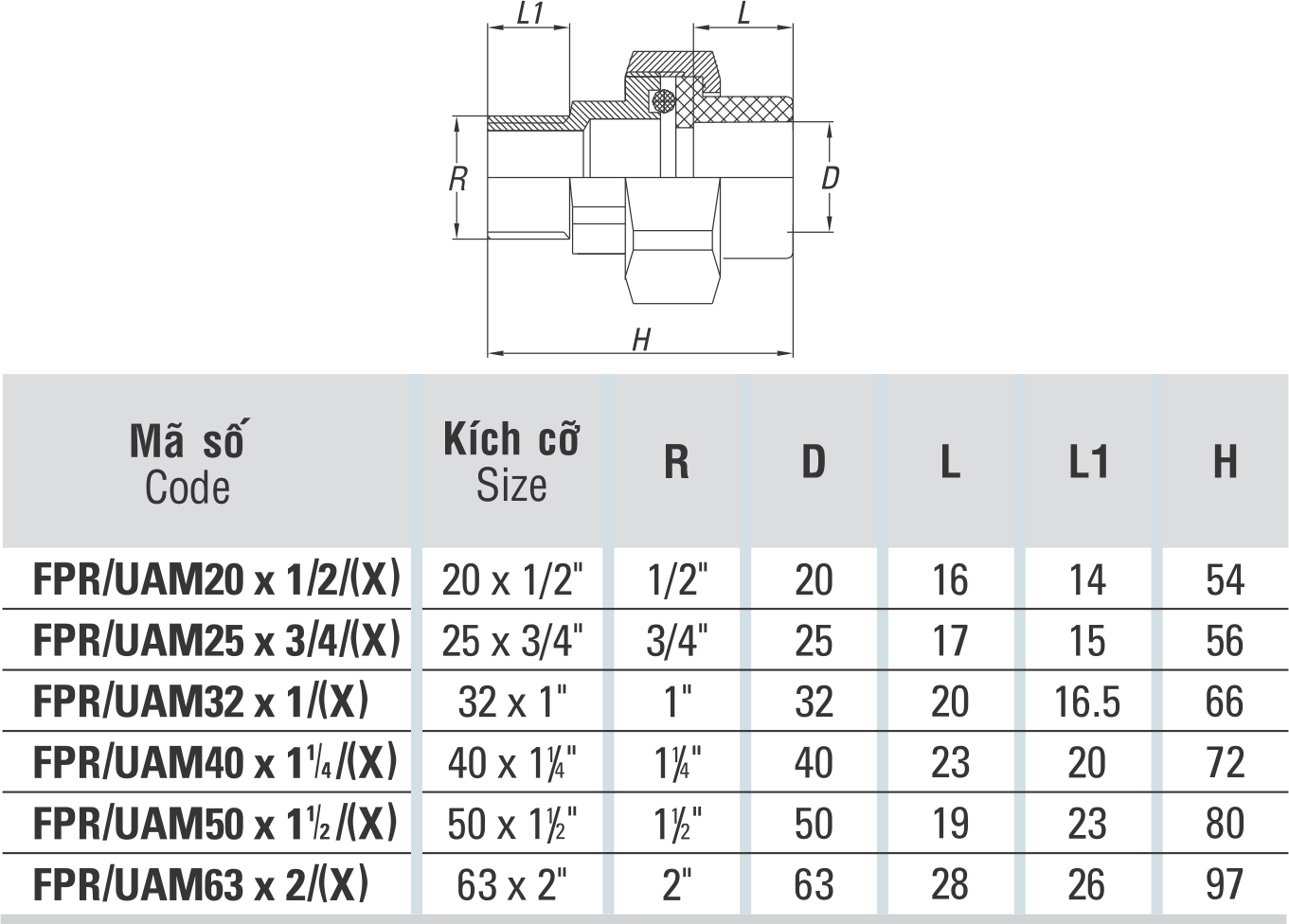 Khớp nối vạn năng ren ngoài 40 x 1 x 1/4”