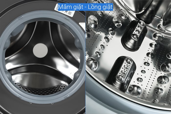– Lồng giặt làm bằng thép không gỉ cứng cáp, bóng sáng, hạn chế gỉ sét, ít bám bẩn, hỗ trợ bạn vệ sinh dễ dàng. Bên cạnh lồng giặt có cần nâng thép không gỉ giúp tăng hiệu suất giặt, chống lại vi khuẩn đến 99%.