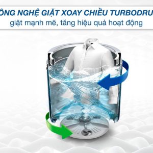 - Công nghệ giặt xoay chiều TurboDrum đảm bảo hiệu quả giặt sạch, giảm xoắn rối, hạn chế mất phom quần áo sau khi giặt.