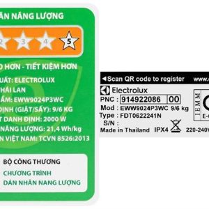 – Nhãn năng lượng 5 sao, hiệu suất sử dụng điện 21.4 Wh/kg.