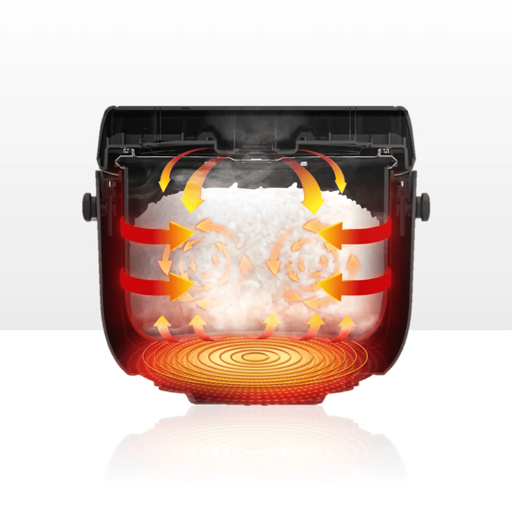 Thăng hạng trải nghiệm nấu nướng với công nghệ gia nhiệt 3D hiện đại, tỏa nhiệt đều từ trên – dưới – xung quanh, giúp từng hạt gạo chín nhanh, nở đều, dẻo thơm trọn vị như vừa được nấu bằng bếp lửa truyền thống.