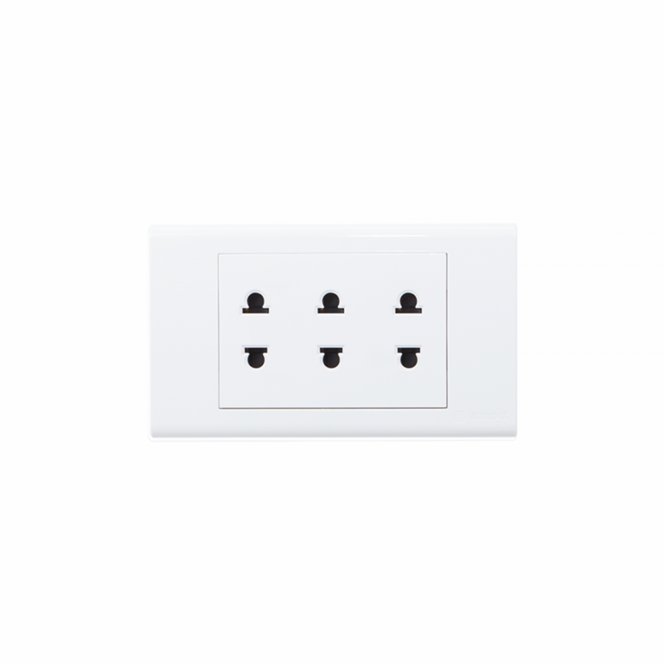 – Đế ổ cắm làm bằng nhựa Polyamide chống cháy – nguyên chất (không có mùi khét như nhựa phế liệu, tái sinh).