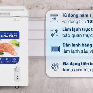 – Tủ đông Hòa Phát có dung tích sử dụng 107 lít, lựa chọn phù hợp để lưu trữ thực phẩm đông lạnh trong gia đình, quán hải sản, tiệm tạp hóa có quy mô nhỏ.