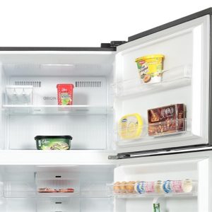 – Dung tích 304 lít, ngăn lạnh có các kệ, khay dạng trượt đựng thực phẩm tươi sống và ngăn đựng rau củ quả. Bên cạnh đó, trên cánh cửa còn có các khay để bạn tiện đặt trứng, mứt hoa quả, nước chấm, đồ uống,…